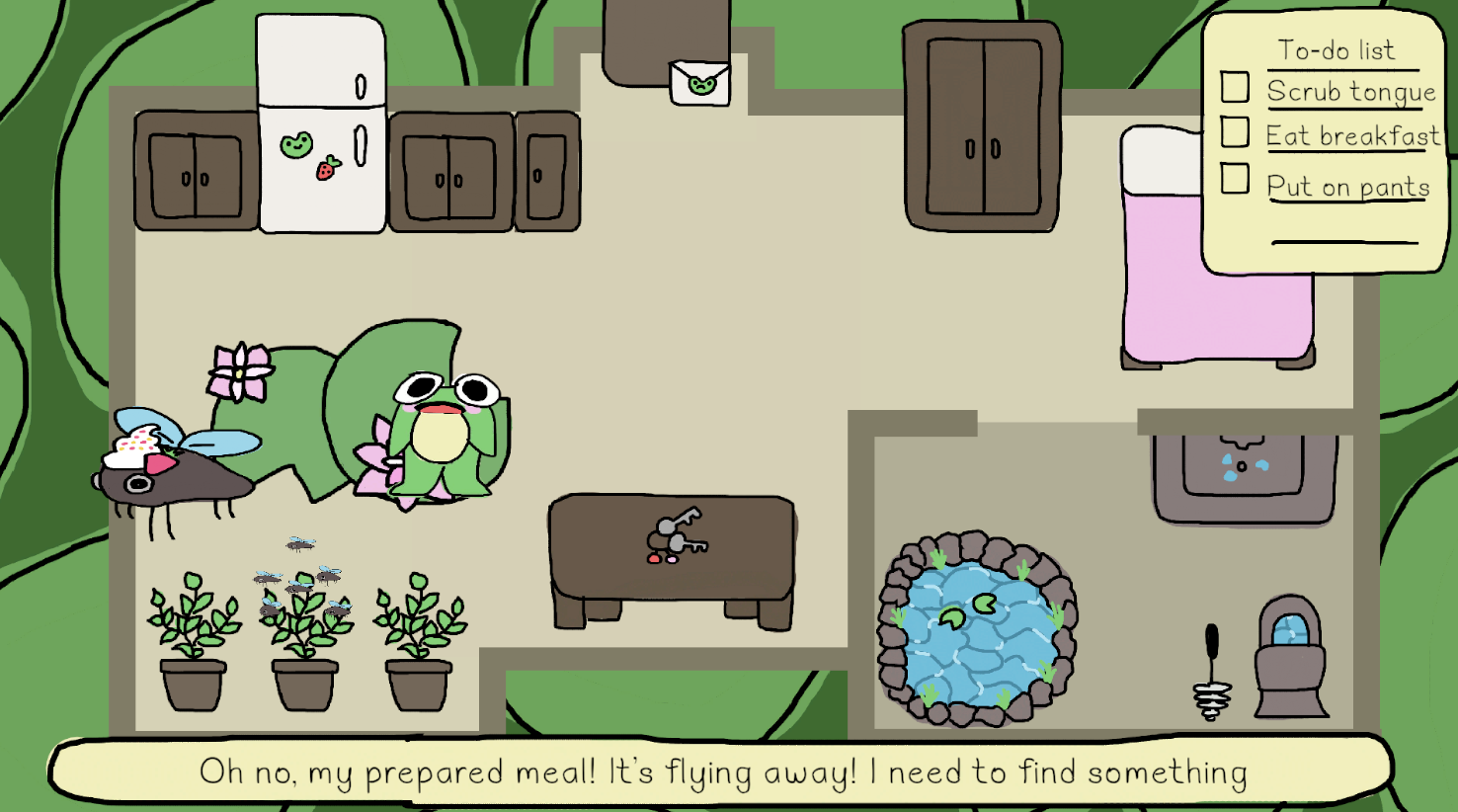 Explore your cozy room, interact with everyday objects, and tackle very normal frog chores.